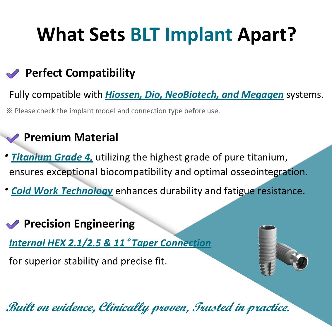 Fully compatible with Hiossen, Dio, NeoBiotech, and Megagen systems.